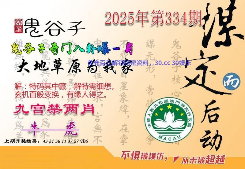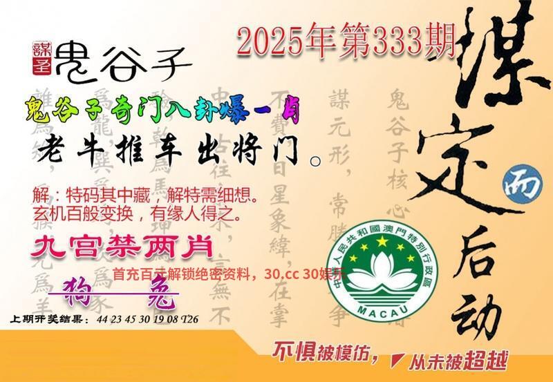 | 335期澳彩鬼谷子【鬼谷子奇门八卦爆一有初出茅庐难敌手】开發00中 |